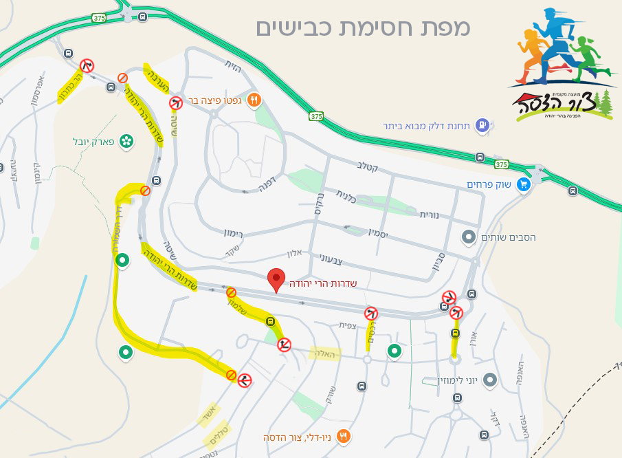 • כיכר רח' שיטה / הזית / רח' הערבה – לא תתאפשר פניה לכיוון הרי יהודה.