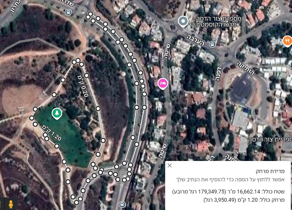מפת מסלול ריצה מקצה 1.2 ק"מ
