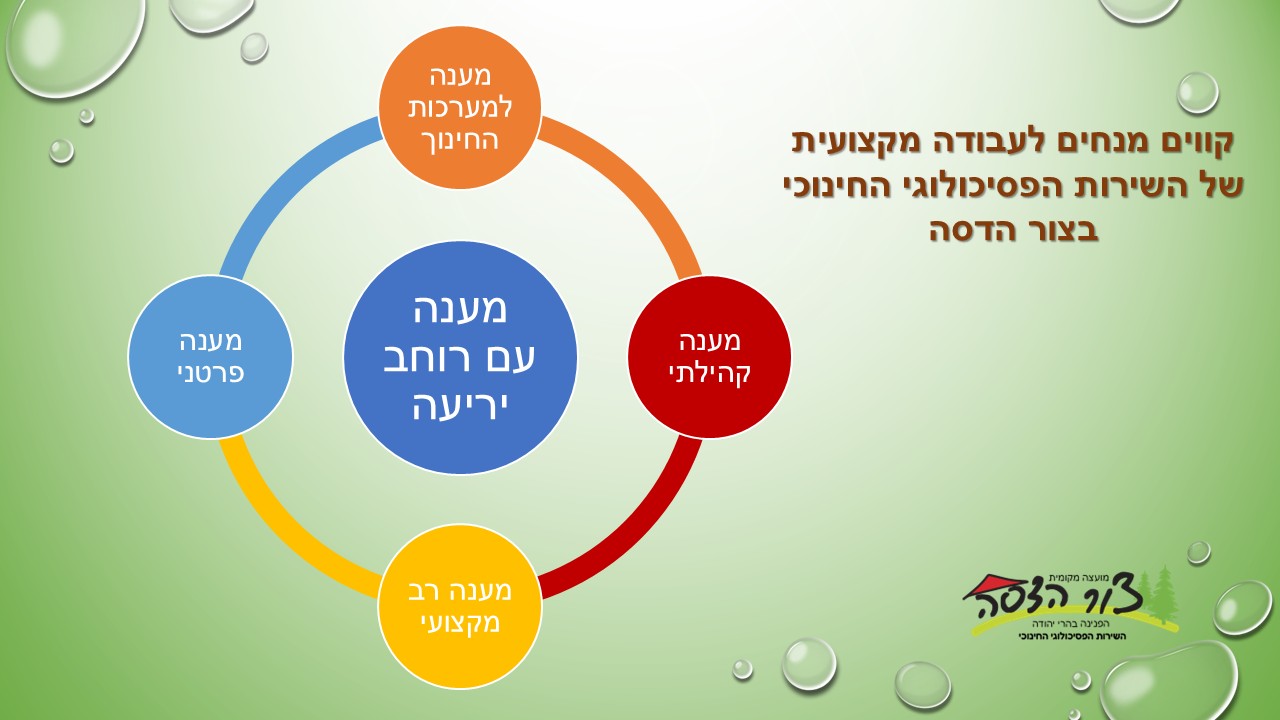 - מענה של 'דלת פתוחה' המאפשר התייעצות של עד 3 מפגשים עם פסיכולוג חינוכי מומחה.