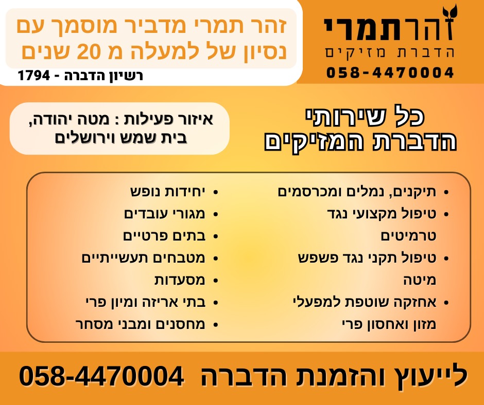 ניסיון של 20 שנה בכל תחום ההדברה התברואית