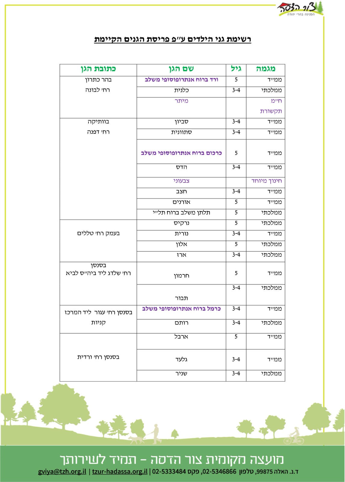 רשימת גני הילדים לרישום מחודש לשנת תשפ"ה