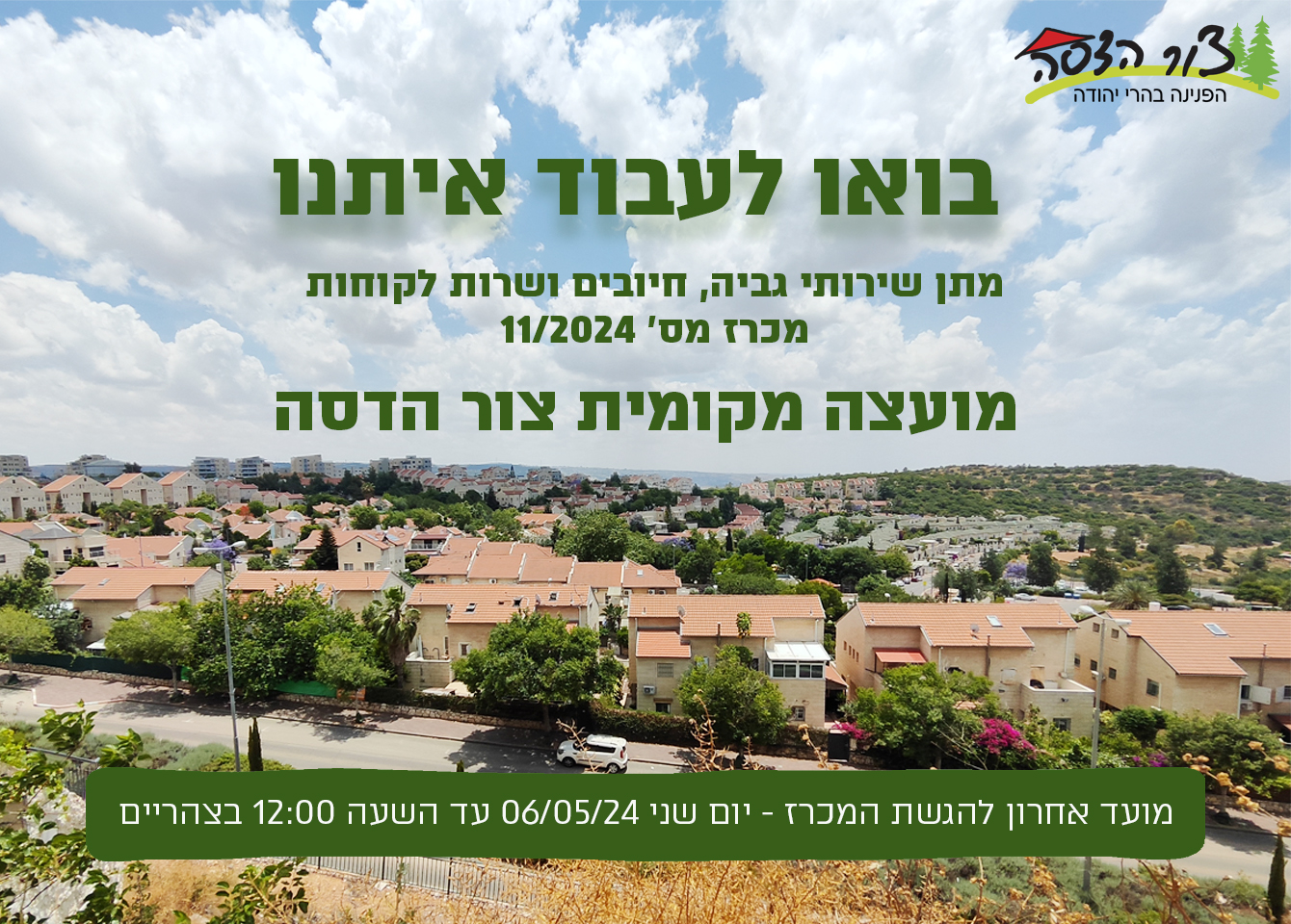 המועצה המקומית צור הדסה (להלן: "המועצה") מבקשים להודיע על שינוי המועד האחרון להגשת ההצעות: