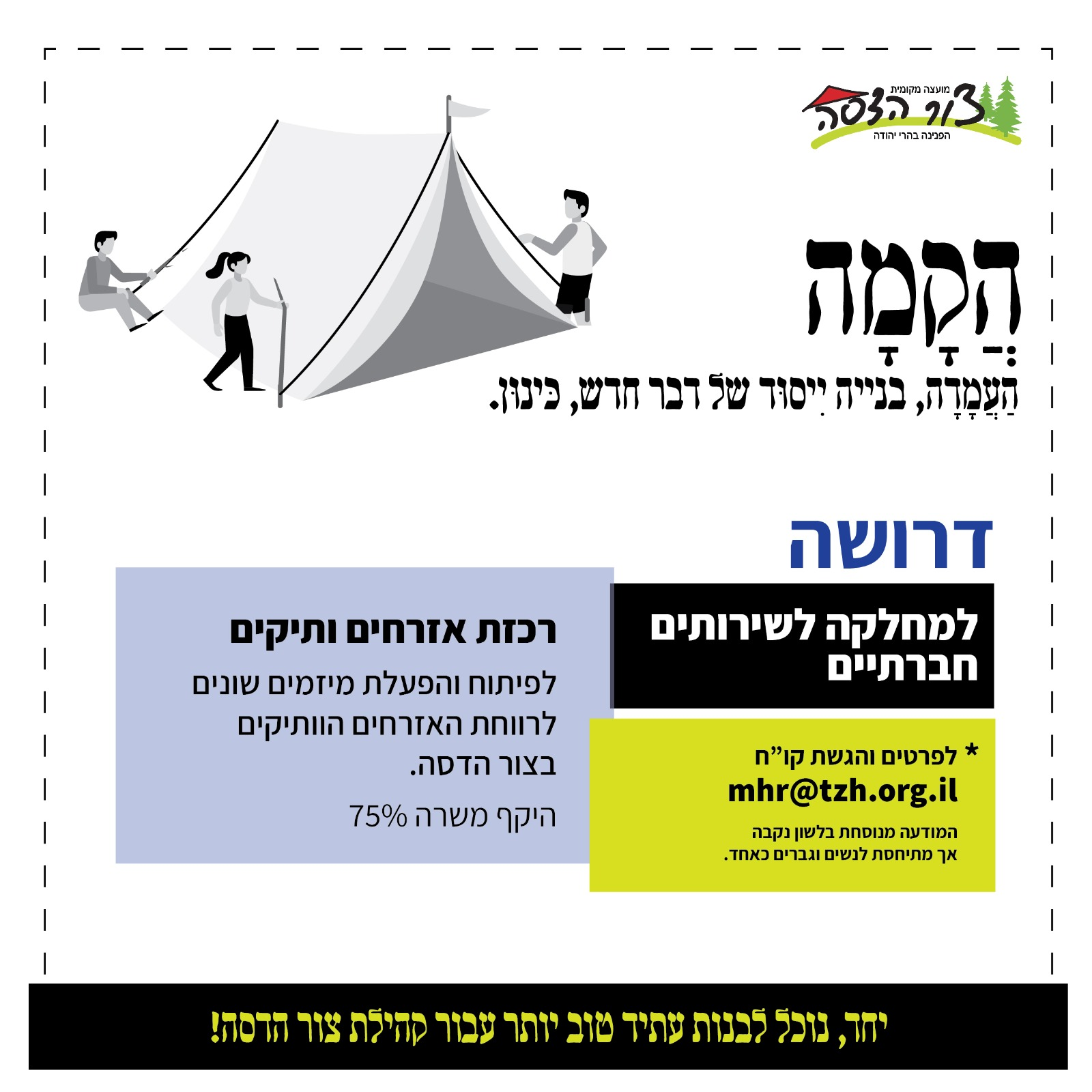 למועצה המקומית צור הדסה דרושה רכזת אזרחים וותיקים למחלקה לשירותים חברתיים וקהילתיים - מכרז מספר 41/25