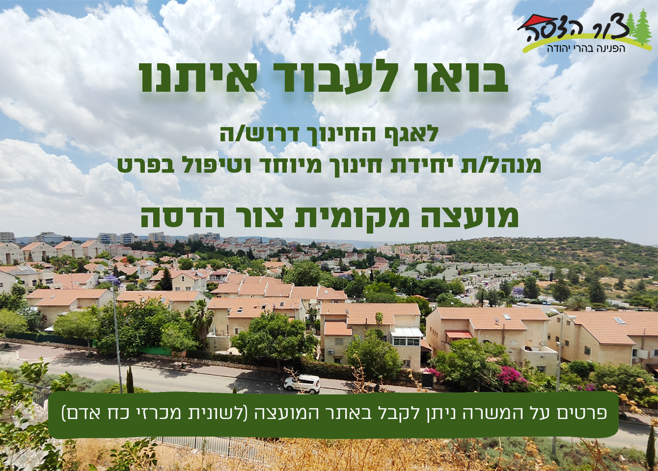 לאגף החינוך דרוש/ה מנהל/ת יחידת חינוך מיוחד וטיפול בפרט - מכרז חיצוני