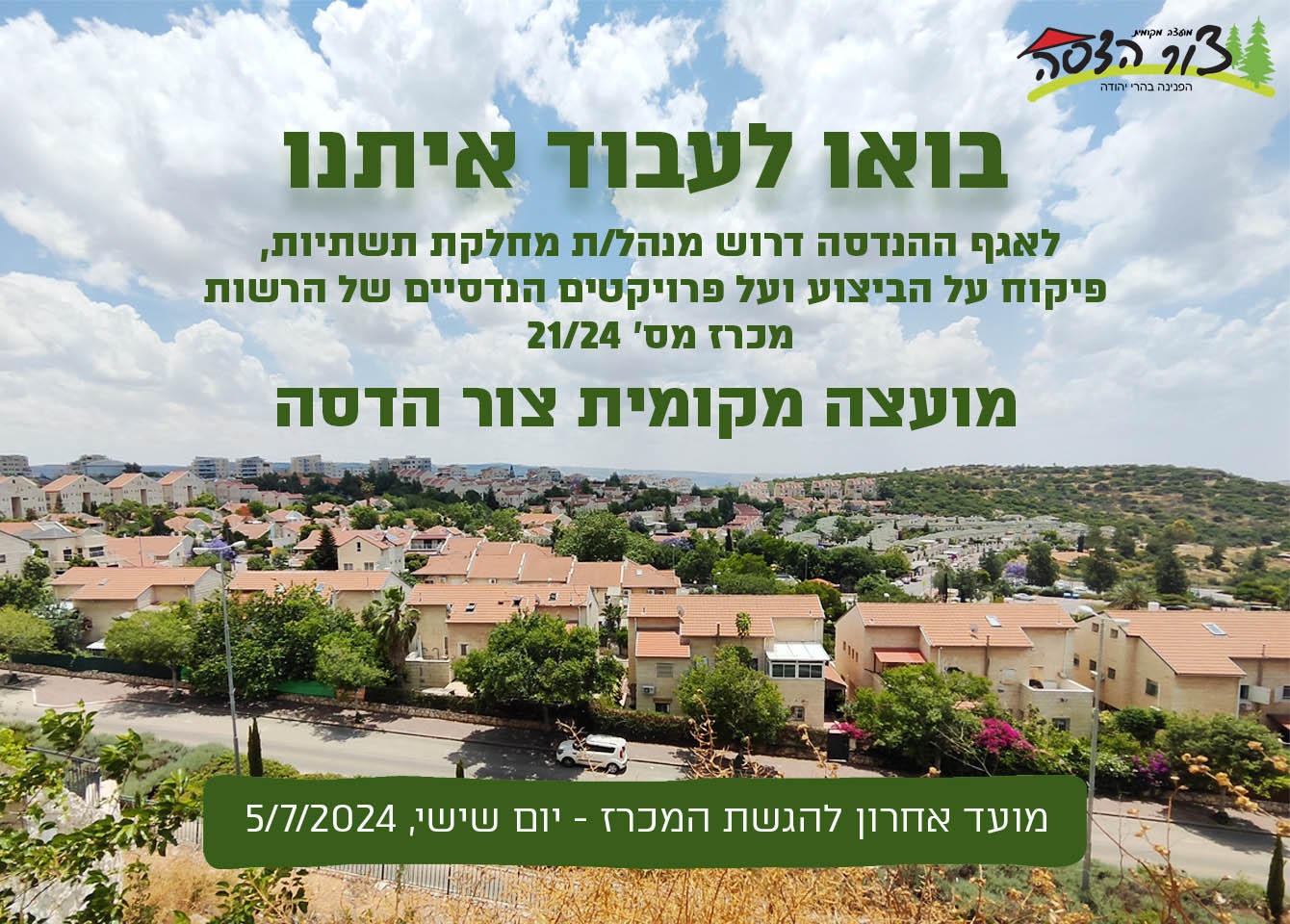 לאגף ההנדסה דרוש מנהל/ת מחלקת תשתיות, פיקוח על הביצוע ועל פרויקטים הנדסיים של הרשות - מכרז מס' 21/24
