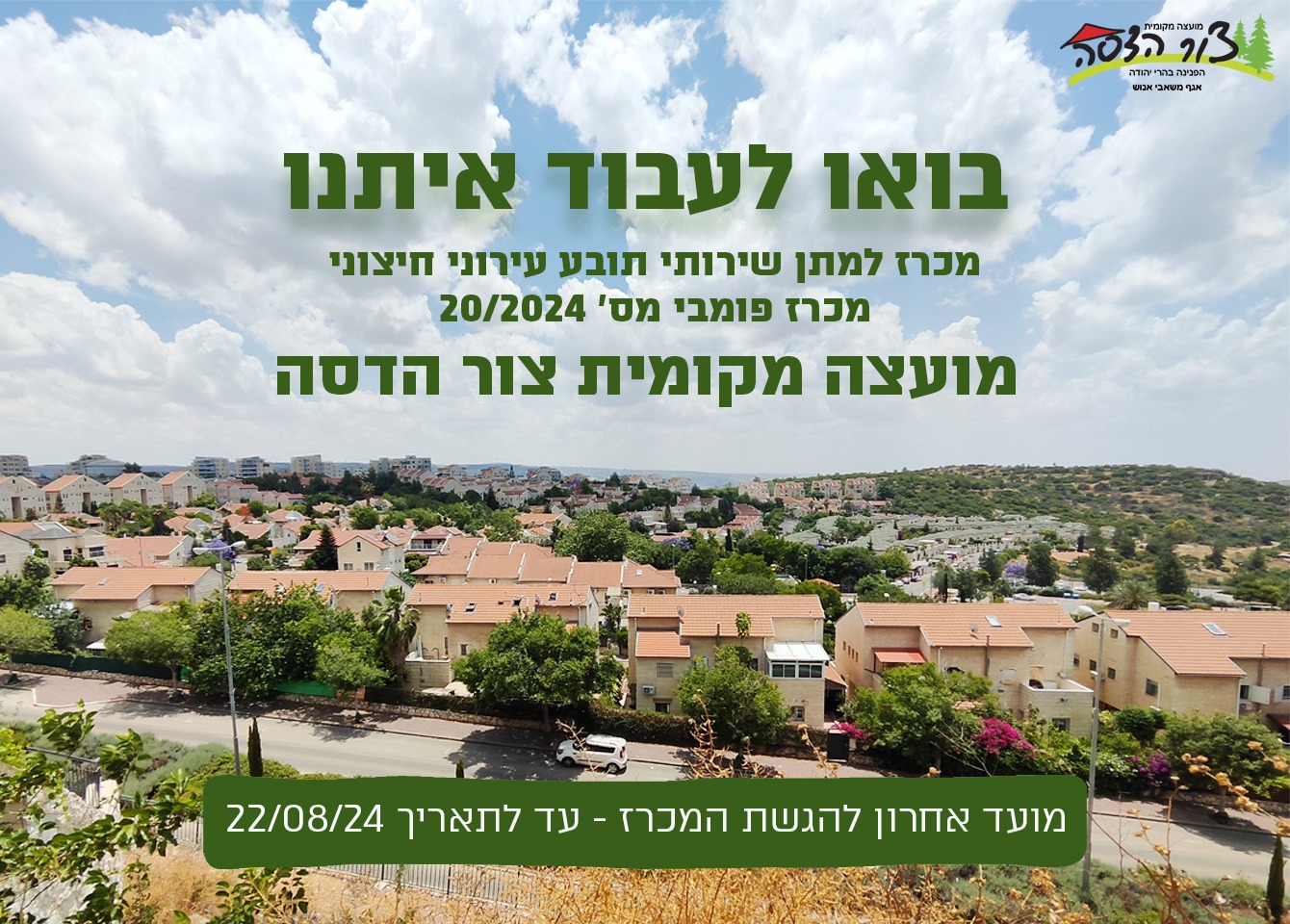 "מכרז פומבי מס' 20/2024 למתן שירותי תובע עירוני חיצוני למועצה המקומית צור הדסה"